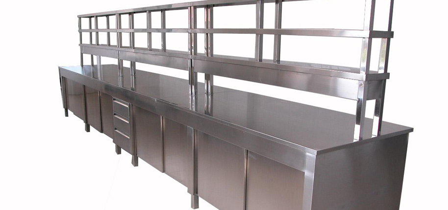 不銹鋼臺面:采用S304不銹鋼四邊折彎內(nèi)襯18-25MM夾板制作(刨花板、中纖板、實芯理化板、環(huán)氧樹脂板、千思板、陶瓷板等臺面,根據(jù)客戶需求提供);